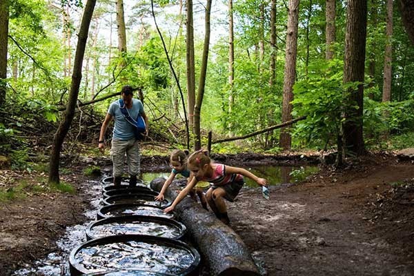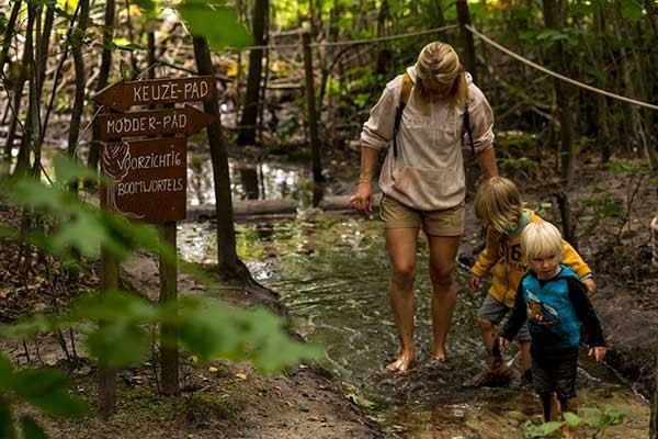 Ein einzigartiger 4 km langer Barfußspaziergang: Spaß für Jung und Alt! Schuhe und Socken ausziehen und die Natur mit allen Sinnen erleben im größten Barfußpark in den Benelux-Länder.