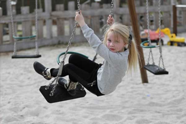 Auf dem Spielplatz im Freien gibt es jede Menge zu erleben. Es gibt eine spezielle Freunde-Schaukel oder man kann sich im Streichelzoo vergnügen.
